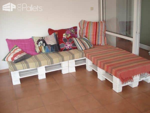 White seems to be the favorite color used for pallet sofas. Here is another example!