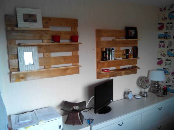 Couple of wall shelves I’ve put in my bedroom to cover a blank space. Made from two small pallets I had left over from a bigger project.